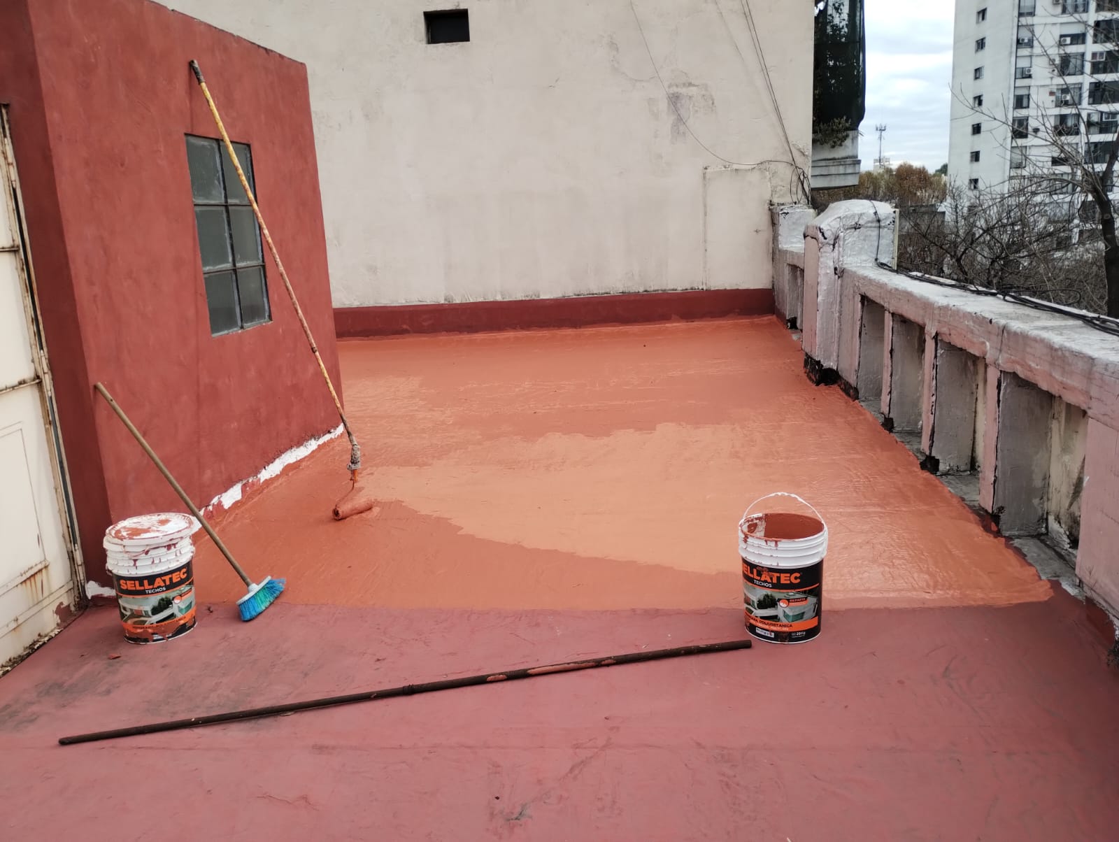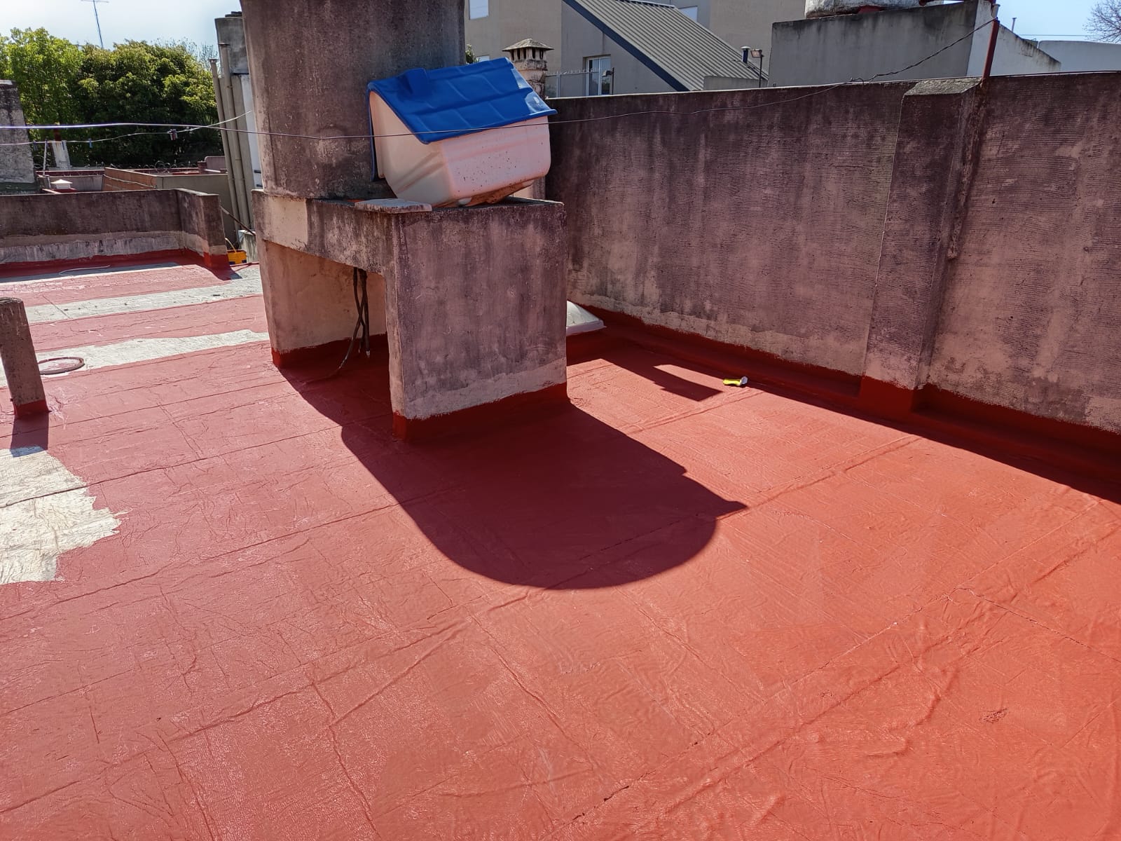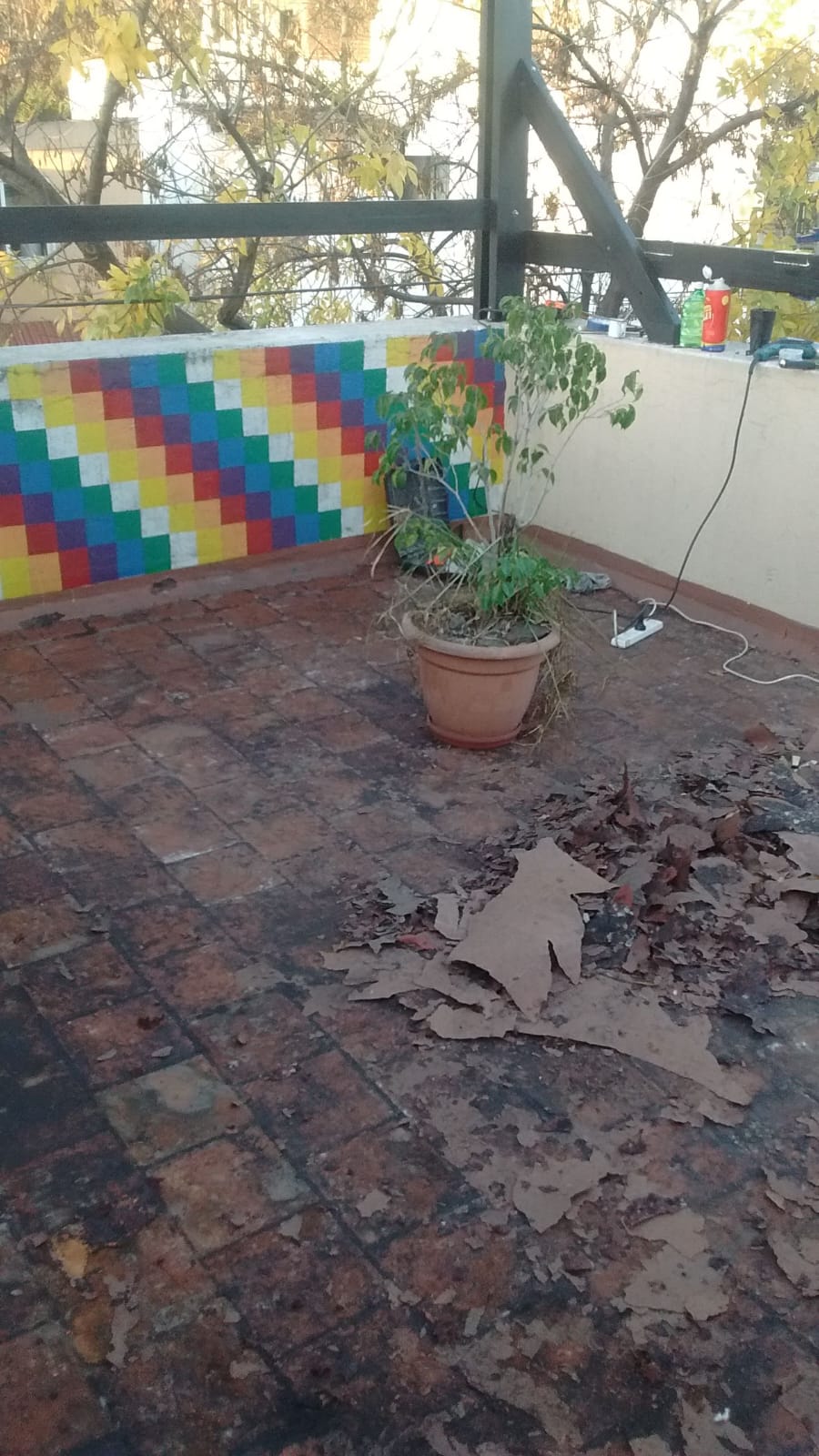 Transformamos el balcón de Gaby con un revestimiento tipo Tarquini, recambio completo de la instalación eléctrica, nueva descarga para los aires acondicionados y un cielorraso de cemento alisado que le suma textura y modernidad. Un espacio exterior que volvió a sentirse propio.